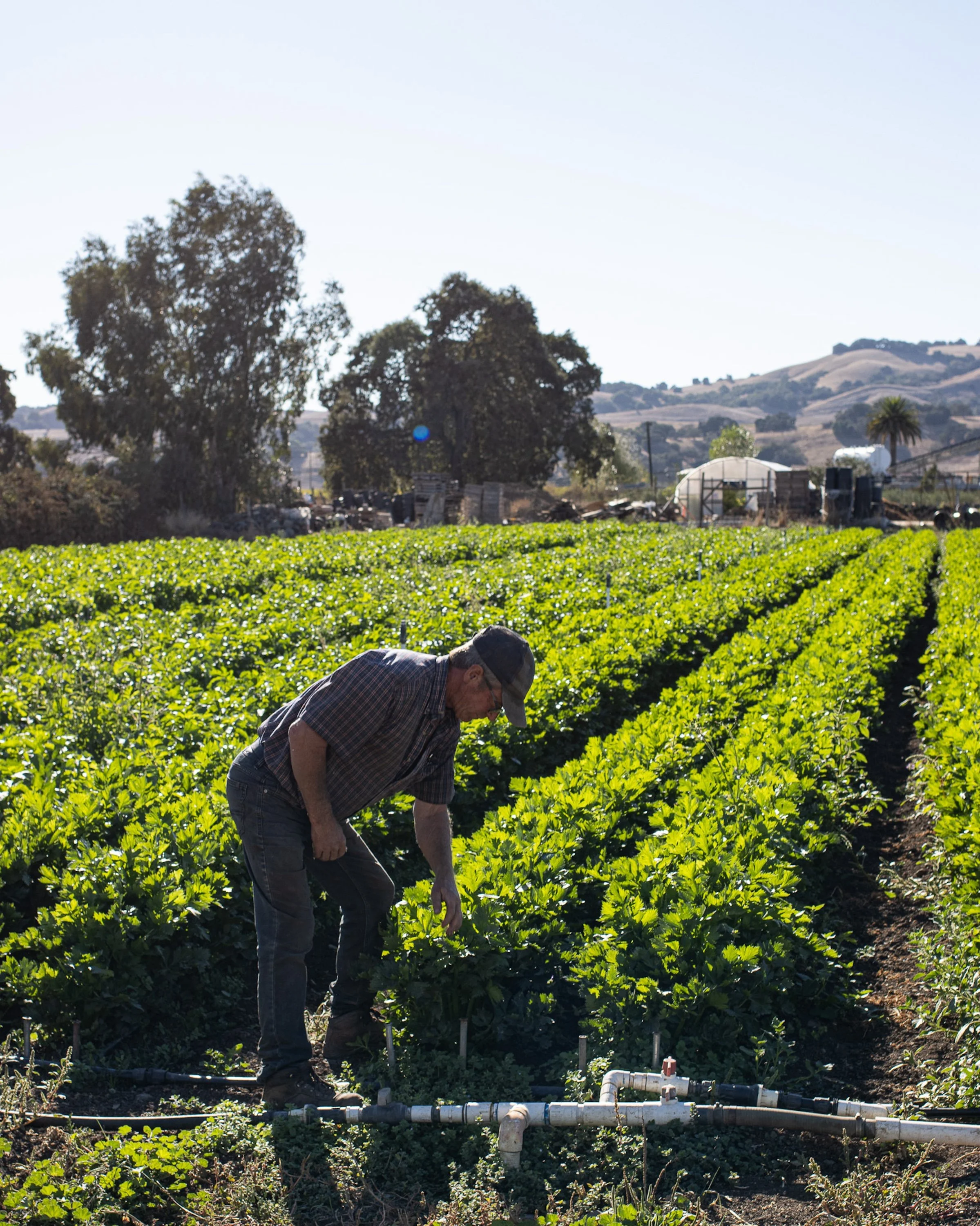 On a pleasant afternoon during this unseasonably cool early summer, Paul Wirtz has agreed to meet me at his Sonoma Valley farm. I am eager to see how the crops are moving along and what will be available in the coming weeks. We cruise along in the farm truck, hopping out at intervals to check the almost-ready-to-harvest. Along the extensive rows, each organized, compact and efficient, there’s broccolini, cauliflower, chicories and celery, some of which is destined for FEED Cooperative’s aggregate CSA box, or FEED Bin. A producer-member of FEED, Paul’s Produce sells roughly 45 percent of what it grows through the Co-op–everything from shelling peas and lemongrass to artichokes and onions. Paul’s Produce is well known in Sonoma County for its exceptional quality and consistent market presence. Folks have long raved about Paul’s carrots. But, for me, it’s the celery that is particularly noteworthy. Requiring consistent care over a long growing period, celery is the finicky mirepoix diva. I snap a sweet stalk off the nearest crown and make a mental note: next time bring a Brix meter.