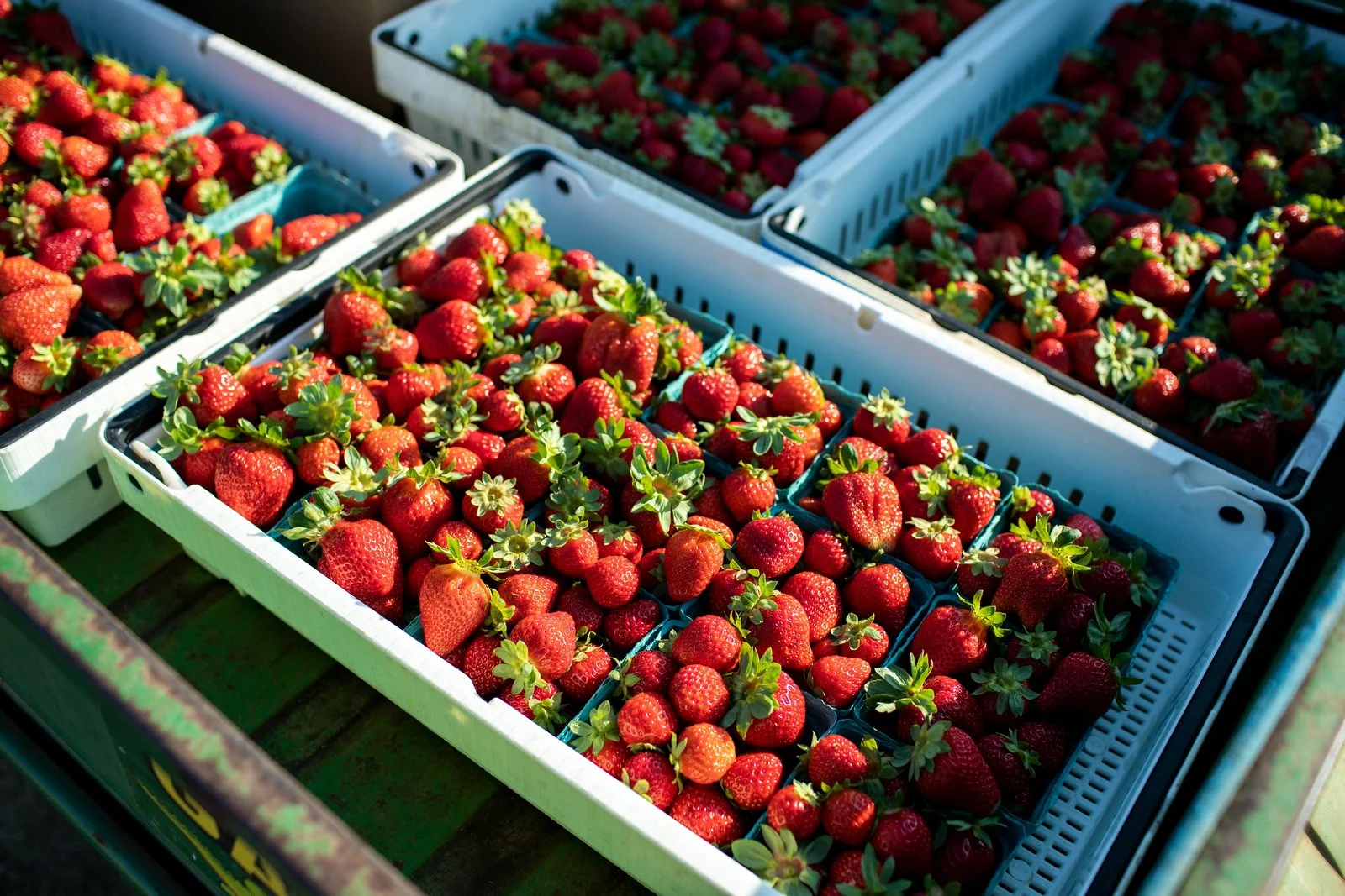 You may expect to receive an assortment of: strawberries, blueberries, blackberries, nectarines, peaches, plums, pluots, apples, pears, Asian pears, melons, kiwis, and more!